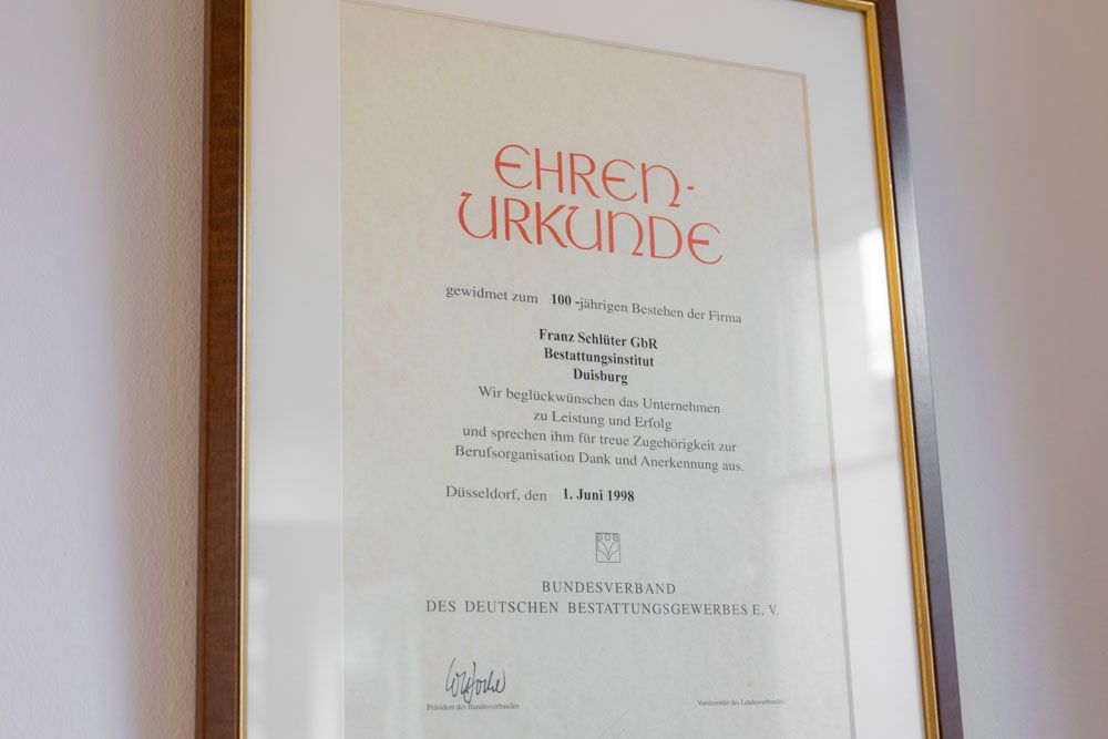 Seit über einem Jahrhundert begleitet Franz Schlüter Bestattungen Menschen in schweren Zeiten. Was einst als handwerklich geprägter Betrieb begann, hat sich im Laufe der Jahrzehnte zu einem modernen Bestattungsunternehmen mit umfassendem Service entwickelt – stets mit dem Ziel, Abschiede würdevoll und individuell zu gestalten.